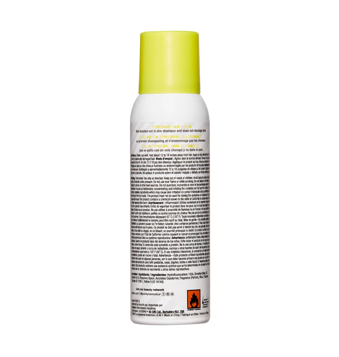- Spray On Fun: The ultimate convenience for busy bees! Get the right color choice for your unstoppable lifestyle with our Punky Colour Leopard Yellow temp hair color spray. Comes in a super convenient 3.5 fl oz that gives you enough juice to glam you up all day. Mess-free, no-fuss hair color extravaganza you can take on the go.